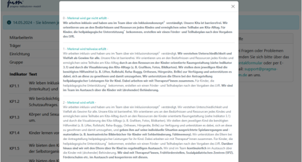 Hier sehen Sie die Qualitätskriterien, die Ihnen angezeigt werden, wenn Sie auf das Fragezeichen klicken: