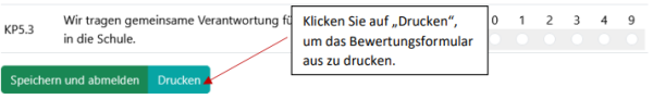 Wenn Sie mit ihrer Bewertung fertig sind, klicken Sie unten links auf „Speichern und abmelden“. Solange der Bewertungszeitraum nicht beendet ist, können Sie über den Link in der E-Mail das Formular erneut aufrufen und Änderungen vornehmen. Sie können so auch die Bewertung nicht am Stück, sondern schrittweise zu verschiedenen Zeitpunkten vornehmen: