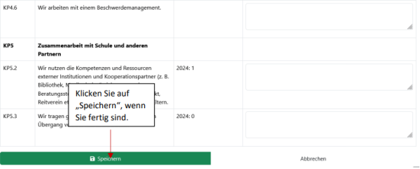 Wichtig: Nach Ablauf des Bewertungszeitraums können Sie keine Bewertung mehr vornehmen und auch keine Änderungen mehr eingeben. Ihr Träger hat aber die Möglichkeit, die Bewertung auch nach Ablauf des Bewertungszeitraums erneut freizuschalten. Sollten Sie dies wünschen, nehmen Sie also Kontakt mit Ihrem Träger auf.