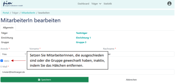 - Wichtig: Löschen Sie MitarbeiterInnen und Gruppen nicht, sondern setzen diese stets inaktiv,