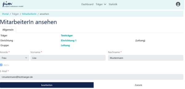 [Bearbeiten]Wählen Sie oben im Menü „Träger“ die Seite „MitarbeiterIn“ aus: