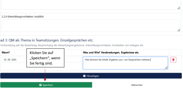 Jetzt können Sie Datum, Teilnehmer, Anmerkungen, Ergebnisse etc. zu dem Gespräch erfassen: